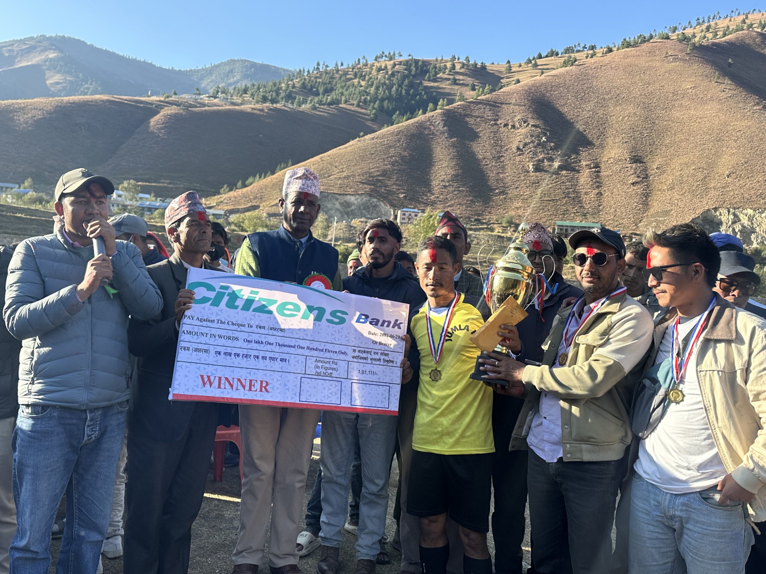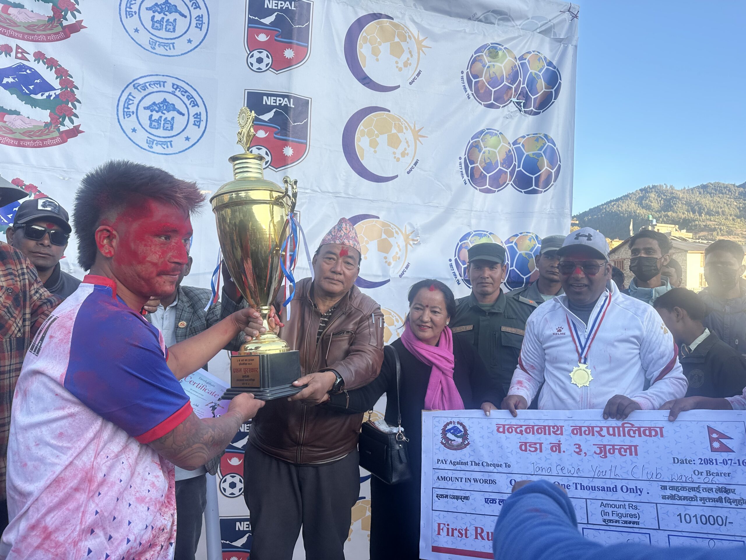 जिल्ला स्तरिय पुरुष फुटबलको उपाधि जुम्ला फुटबल क्लबले उचाल्यो एच वान युवा क्लब हाँकु र जुम्ला एफ.सी फाइनल मा प्रबेश आगलागि पिडित कमल नेपालिको परिवारलाई नेपाल निजामति कर्मचारी संगठनद्रारा आर्थिक सहयोग यू-14 फुटबल प्रतियाेगिता: छात्र तर्फकाे उपाधी चन्दननाथ माबिलाइ Posts pagination 1 2 … 11 Next