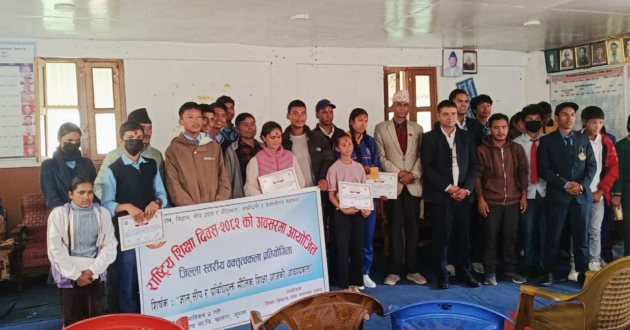 प्रतिभा पहिचान कार्यक्रममा कर्णाली माबि प्रथम हिमा गाउँपालिका नेपालकै दोस्रो बालविवाह मुक्त घोषणा स्वर्गीय बुवाको सम्झनामा धन प्रसाद चौलागाईंले गरे बिद्यालयलाई शैक्षिक सामग्री सहयोग Posts pagination 1 2 … 8 Next