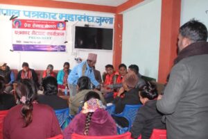 पत्रकारको हक अधिकार सुनिश्चित गर्ने र पत्रकार क्षेत्रमा लागेकालाई दिगोपन दिन र उनीहरूको क्षमता अभिवृद्धि गर्ने प्रदेश सरकारले सहयोग गर्न अति आवश्यक रहेको प्रेस सेन्टर नेपाल जुम्लाका अध्यक्ष विजय रावतले बताए ।