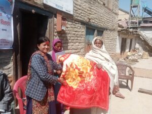 बुधबार उक्त पालिकाको वडा नं.१ र २ का लक्षित वर्ग भित्र पर्ने एकल महिलालाई कम्बल लिएर गाउँमा पुगेकी हुन् । उपाध्यक्ष सहायत कार्यक्रम अन्तर्गत समुह गठन परिचालन तथा न्यानो कम्बल वितरण कार्यक्रम सुरु गरेकी छन् । उपाध्यक्ष गोरीकला बुढाले भनिन्, “वडा नं. १ मा २३ जना र २ नम्बर वडामा २० जना गरी ४३ जना एकल महिलालाई कम्बल वितरण गरेको उपाध्यक्ष बुढाले बताइन् । उनले भनिन् जेष्ठ नागरिक तथा एकल महिलाका आशिर्वाद लिदै मतदाताका गुनासो सुन्दै घरदैलो कार्यक्रम गरिहेका छौँ ।